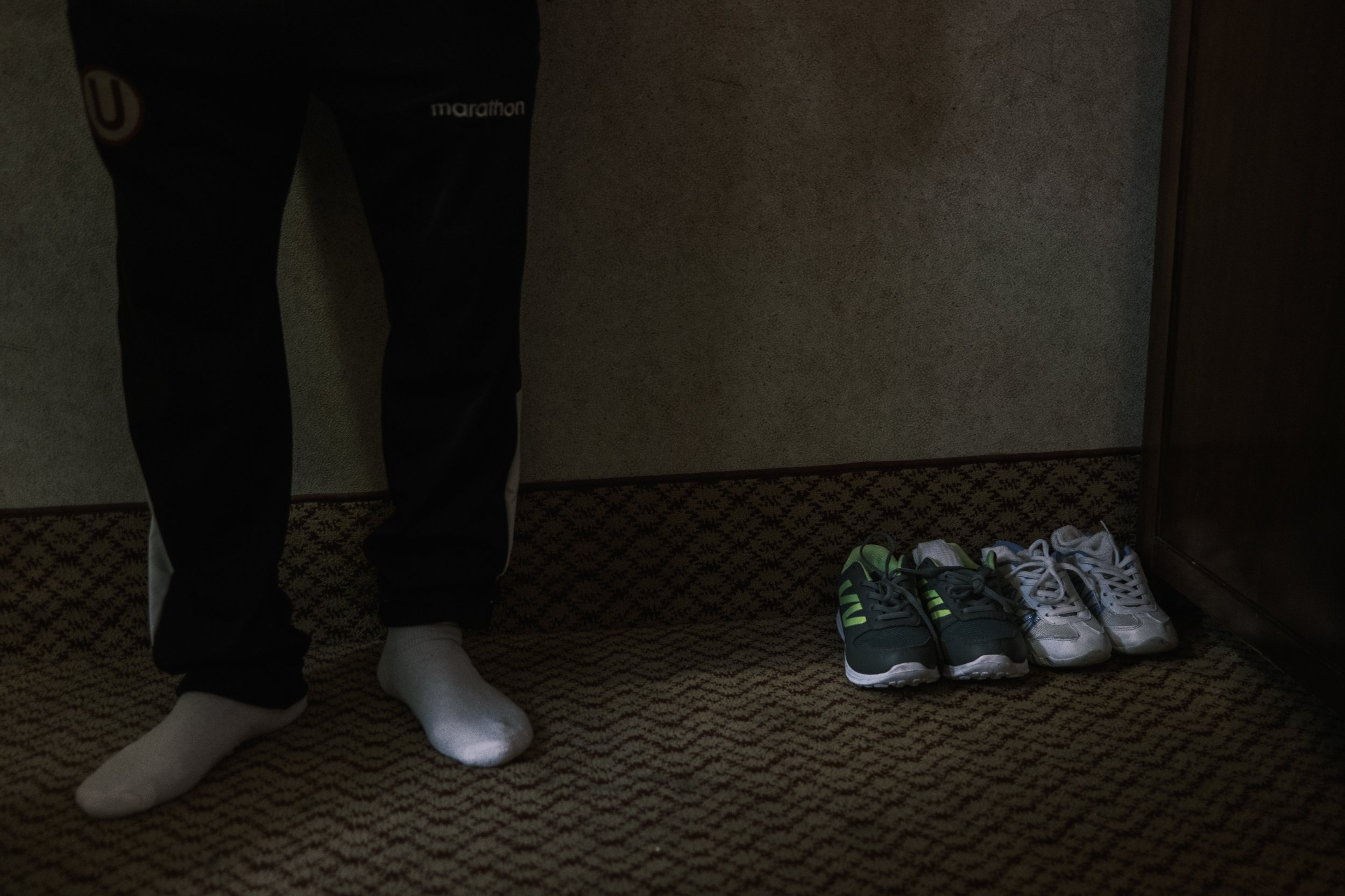 Inside the room belonging to Soumailia Ziguime, who arrived from Mali with his wife and two sons
